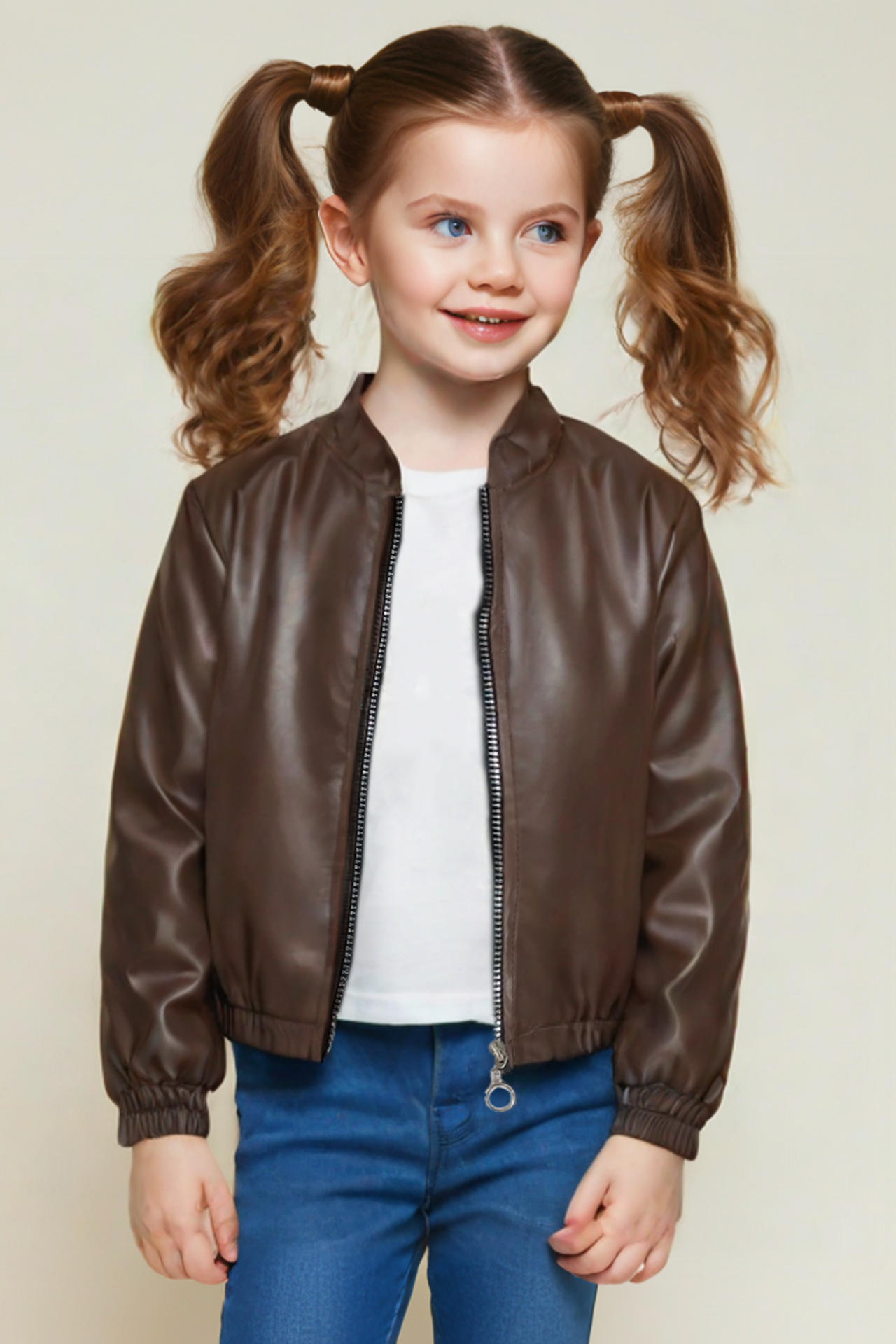 Kız Çocuk Bomber Deri Ceket Fermuarlı, Rahat ve Şık Tasarım Mevsimlik Mont okul, Günlük, Özel Gün KAHVERENGİ - 8-9 Yaş
