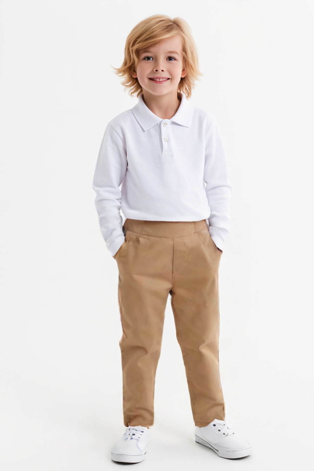 Erkek çocuklar için özenle tasarlanmış bej renk pantolon, çocuğunuzun her ortamda hem rahat hem de şık olmasını sağlar! Günlük kullanım, okul kombinleri, oyun saatleri ve özel etkinlikler için ideal olan bu pantolon, modern kesimi ve yumuşak kumaşı ile ön plana çıkar.